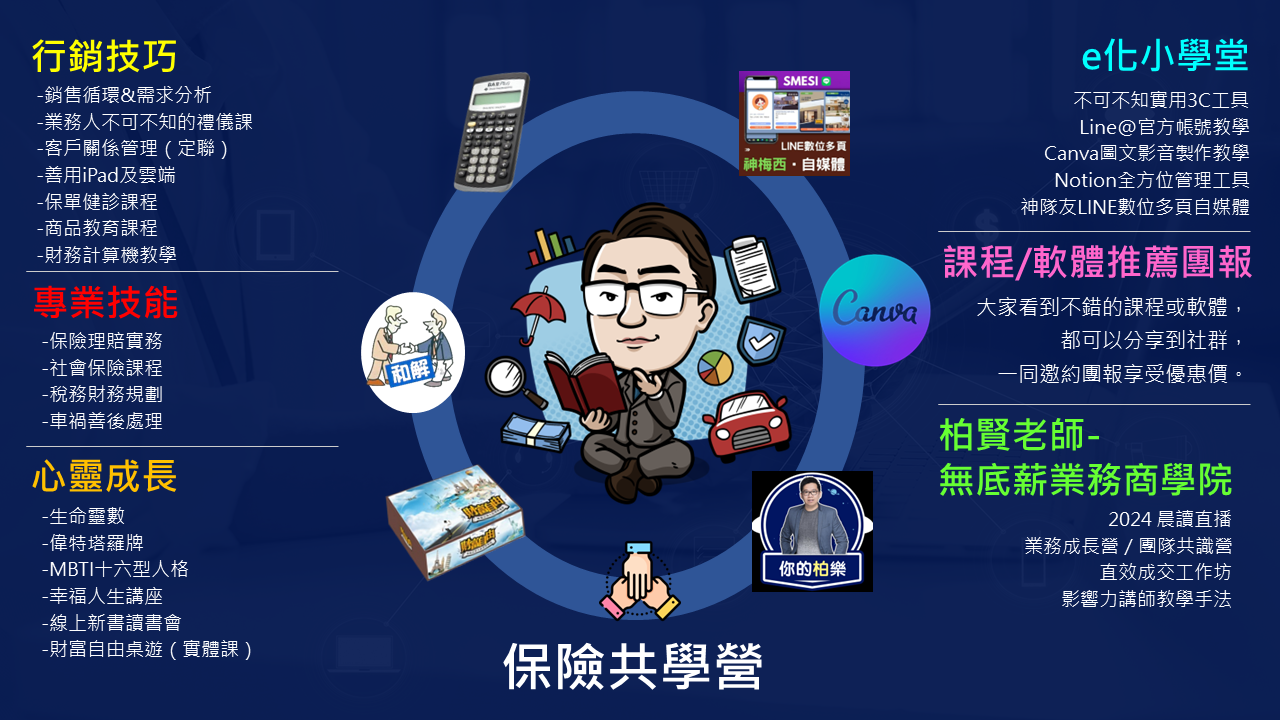 在這裡,您會找到豐富的學習資源、專業的課程和多元的活動。無論您是保險新手還是資深專業人士,都能在這裡一起跟大家交流、成長和學習,找到適合自己的成長路徑。